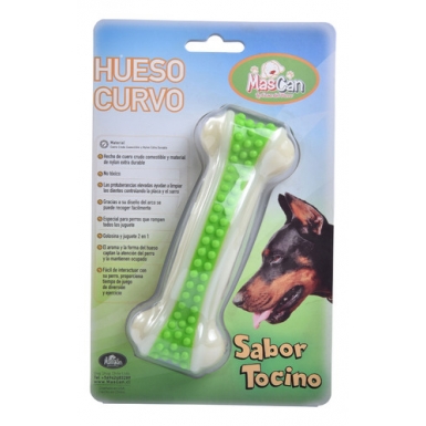 Tu perro no podrá mas de felicidad con este Hueso Curvo de Mascan, no solo porque se va a divertir mucho con el sino también porque tiene un exquisito sabor a tocino. ¡Es el regalo y premio ideal para los regalones de la casa!