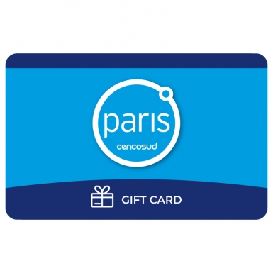 Gift Card para ser utilizada en todas las tiendas Paris.París es una cadena de grandes almacenes fundada en Santiago, Chile. La actividad principal de Paris es la venta minorista de ropa, pero además ofrece Electrónica, Muebles, Peluquería, Regalos, Vestuario, entre otros rubros.