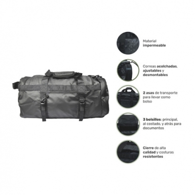 • Bolsillos: 3 (principal, al costado y atrás para documentos)