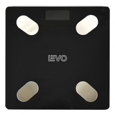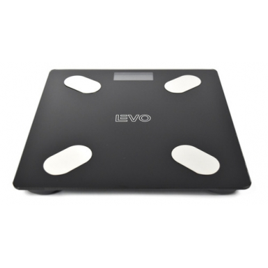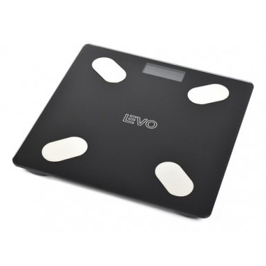 Pesa electrónica negra de vidrio templado con conexión bluetooth. Diseño moderno y limpio e higiénico con encendido automático. Esta pesa de alta precisión mide desde 0,1 kg hasta 180 kg posee bluetooth con conexión a una aplicación en tu teléfono que registra un histórico y actual de tu situación corporal.