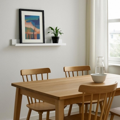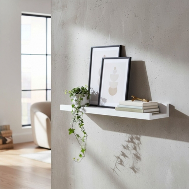 Esta repisa galería en color blanco combina elegancia y funcionalidad, ideal para aportar un estilo minimalista y moderno a cualquier espacio. Perfecta para exhibir fotos, libros o elementos decorativos, su acabado blanco ilumina y armoniza el ambiente, creando una sensación de orden y amplitud.