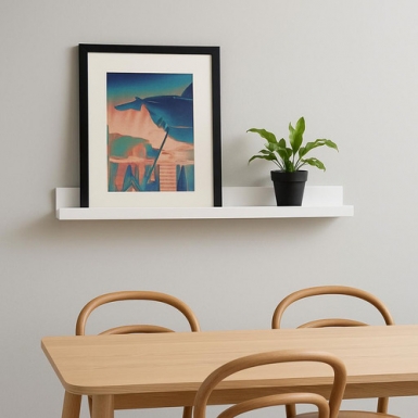 Añade un toque de elegancia y funcionalidad a cualquier espacio con esta repisa minimalista y moderna.