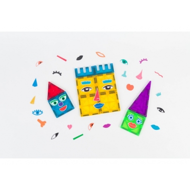 ¡Pega y despega cuantas veces quieras! Mezcla todas las figuras, rostros, ojos y narices para darle una personalidad propia a tu juego.