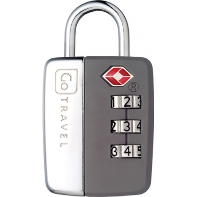 Candado de combinación Go Travel en color gris. Este candado cuenta con un mecanismo de código de 3 líneas de dígitos, que permite configurarlo con un código personalizado para su desbloqueo exclusivo. Aprobado por TSA, este candado permite que el equipaje sea examinado por seguridad sin causarle daño. Es adaptable a la mayoría de las maletas y bolsas, proporcionando seguridad para sus pertenencias durante todo el trayecto.